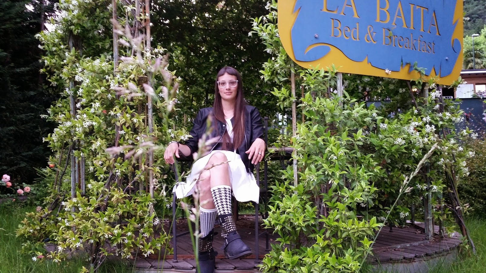 Visto il caldo di ieri non avevo per nulla voglia di fasciarmi in un paio di pantaloni, quindi ho optato per questo freschissimo abito bianco, abbinato ad una giacchetta ed un paio di Biker boots borchiati, il tocco finale lo hanno dato le mie calze Oybo con fantasia pied de poule in due differenti grandezze ! ( Potete leggere l'articolo QUI )